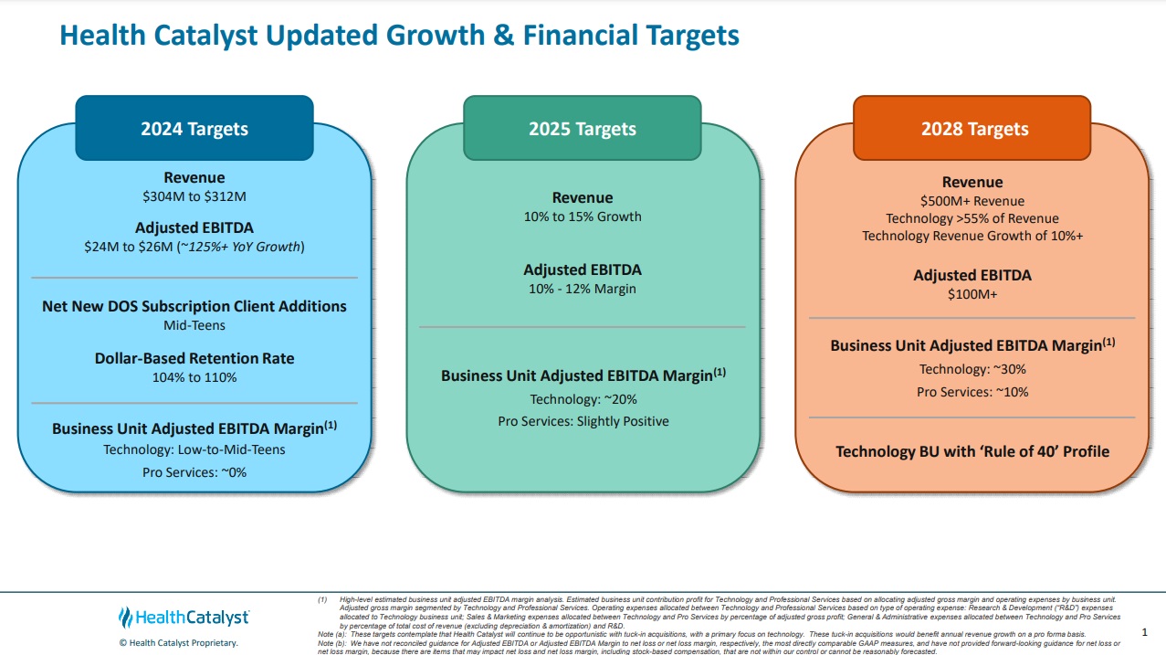 “Additionally, in connection with our annual planning process, we are enacting multiple Leadership level changes. First, Bryan Hunt will be transitioning from CFO to a Strategic Advisor role, effective March 1, 2024. I would like to express my heartfelt gratitude to Bryan for his countless contributions to Health Catalyst’s growth and success over the last ten years, including his service as our CFO, helping us navigate through a global pandemic, record high inflation, and a period of tremendous financial pressure for our health system clients. Bryan has been an extraordinary leader and partner to me and to our Board of Directors, and we are grateful for his dedication, professionalism and commitment to the company and its mission. I am also pleased to share that Jason Alger will begin as Health Catalyst’s CFO, effective March 1, 2024. Jason has been with Health Catalyst for more than ten years, having contributed significantly during that time, including most recently as our Chief Accounting Officer. Prior to joining Health Catalyst, Jason held various roles at Ernst & Young. My fellow board members and I, along with our finance organization, have the utmost confidence in and respect for Jason. Also, effective March 1, 2024, Dan LeSueur will be promoted to Health Catalyst’s Chief Operating Officer role, with responsibilities spanning both our Technology and Professional Services business units. Dan brings a wealth of experience to this role, having had leadership responsibility across many functions during his twelve years at Health Catalyst, most recently as the Senior Vice President and General Manager of our Professional Services Business Unit. I am thrilled to have someone with Dan’s breadth and depth of expertise to lead this important strategic function as Health Catalyst continues on its maturation path, focusing on operational excellence to enable scalable growth and profitability.”